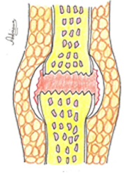 Destrucción del hueso y cartílago, en ambos lados de la articulación.