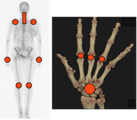 En las Rx seriadas de control, la esclerosis de las erosiones oseas indican reparación y la aparición de nuevas lesiones, progresión de la enfermedad. (6).