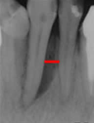Rx periapical. Incremento del espacio que rodea el diente, por enfermedad periodontal.