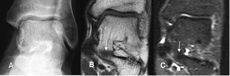 A: Rx lateral. Pie plano y visualización de os trigonum.