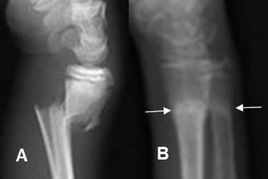 A: Rx AP. Fracturas espiroideas del peroné y la tibia.