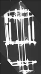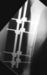 Rx AP. Tutor externo utilizado para lograr el alargamiento de la extremidad.