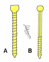 B: Tornillo de esponjosa, sin rosca en su parte inicial.