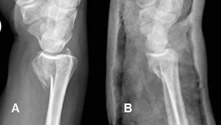 A: Rx lateral. Fractura del radio distal, con angulación anterior.