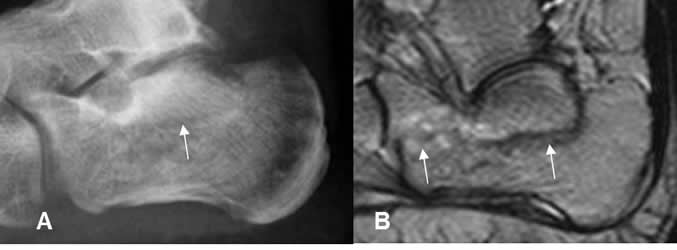 A: Rx lateral: Fractura conminuta e impactada del calcáneo.