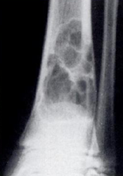 Mas frecuente en la 2º década y en la metáfisis de los huesos largos. (Rodilla) y la mayoría curan espontáneamente. (18, 23). (Fig 98).